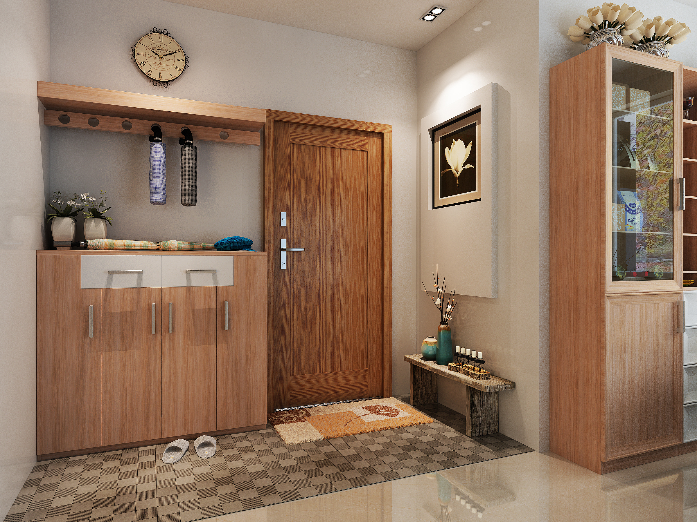 原木色彩配瓷砖的入户玄关规划是不是让你眼前一亮,原木色鞋柜造型新颖共同,封闭式柜体隔绝异味和尘埃,质感拉环,让鞋柜愈加漂亮。鞋柜上方摆放几盆喜爱的绿植或鲜花,给居室平添几分绿意。
