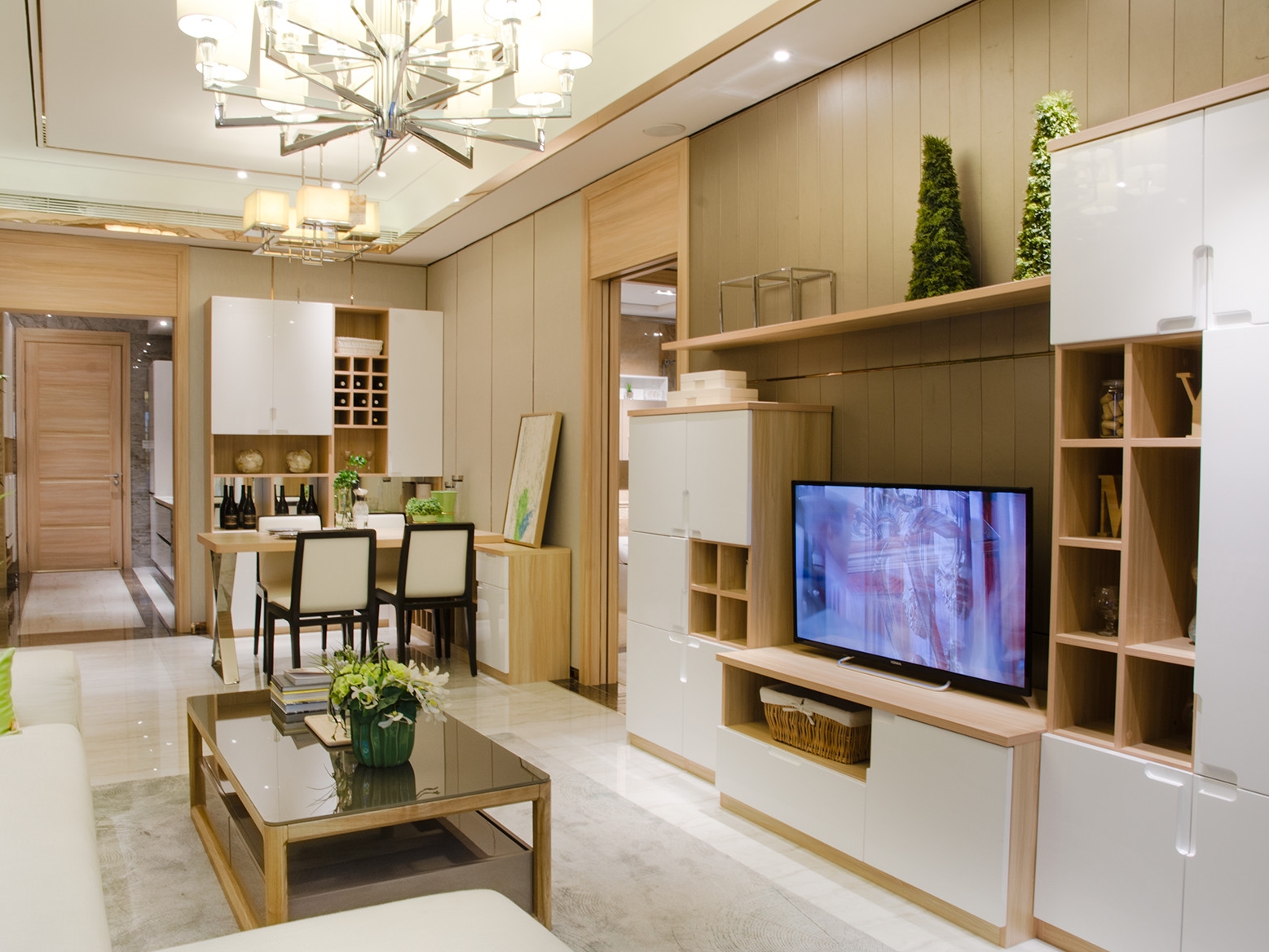 上面这张原木色彩配瓷砖作用图中,以原木纹路板材为全屋主色彩,明晰天然的原木纹路,吹来清新风。该款客餐厅装饰凸显有用主义,精简繁琐工序,满意主人日常所需,突落发的温馨与舒适感。